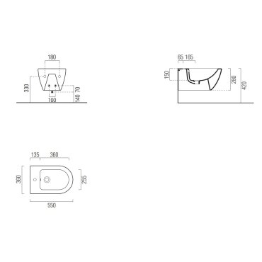 Bidé mural con grifería de un orificio y rebosadero. Fabricado con el esmalte especial Extraglaze® Antibacterias, el bidé Pura 55 dispone de un sistema de fijación rápida oculto desde abajo.