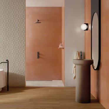 La serie de baldosas Aurea, de pasta blanca, de Ceramica Rondine se inspira en el ladrillo visto tradicional y lo reinterpreta con un toque moderno, creando superficies llenas de encanto y con un aire antiguo.