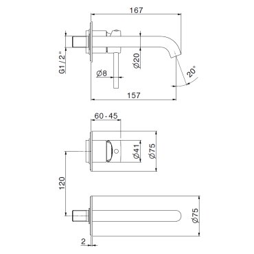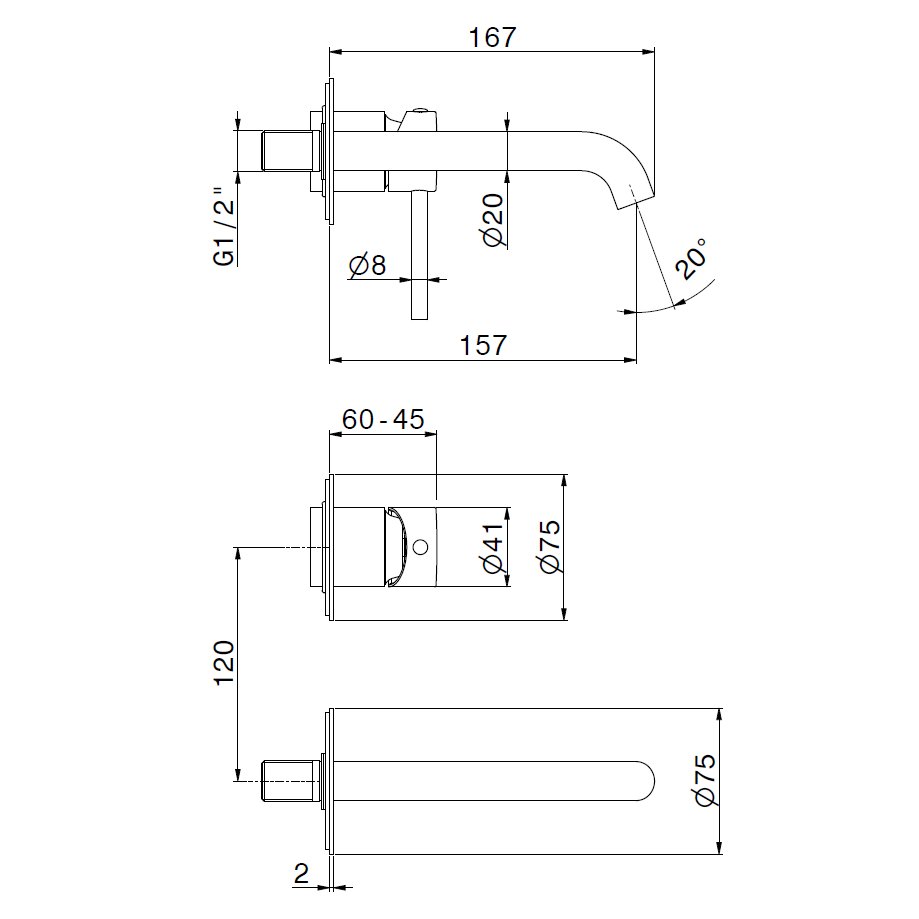 NEWFORM X-WAY MEZCLADOR DE LAVABO MURAL SIN DESAGÜE CROMO