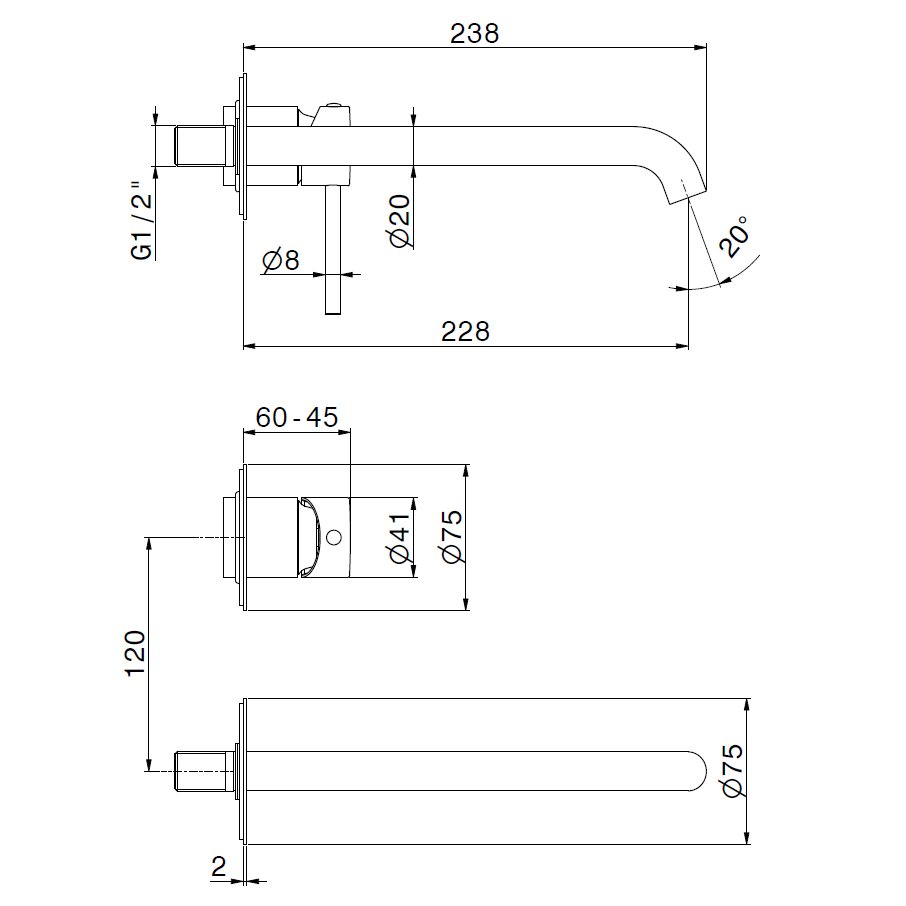 NEWFORM X-WAY MEZCLADOR DE LAVABO MURAL CAÑO LARGO SIN DESAGÜE CROMO