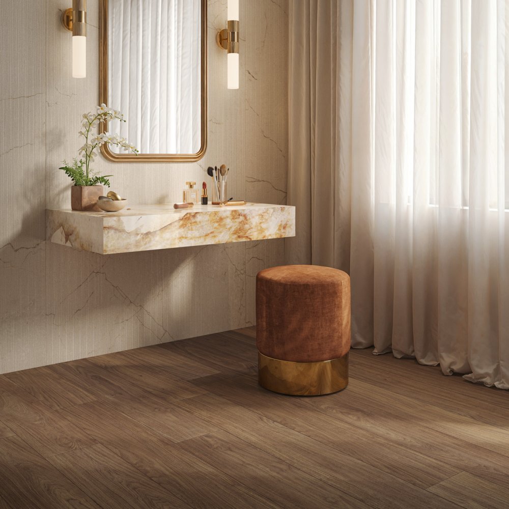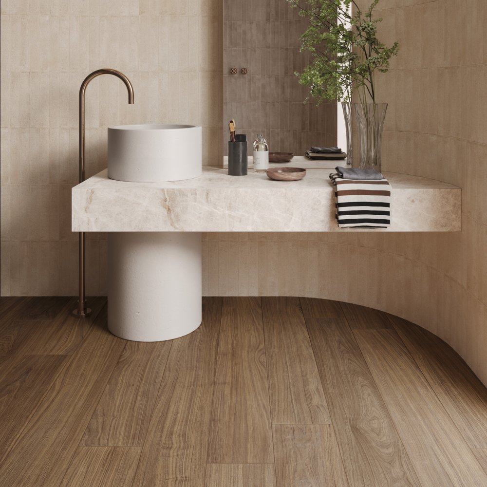 El proyecto Nobilis de Marazzi rinde homenaje a la elegancia sobria y contemporánea, y combina la majestuosidad estética de la madera de nogal con la superior resistencia del gres porcelánico. Nobilis se distingue por sus vetas cálidas y realistas, que infunden a cada ambiente una atmósfera de lujo discreto y envolvente.