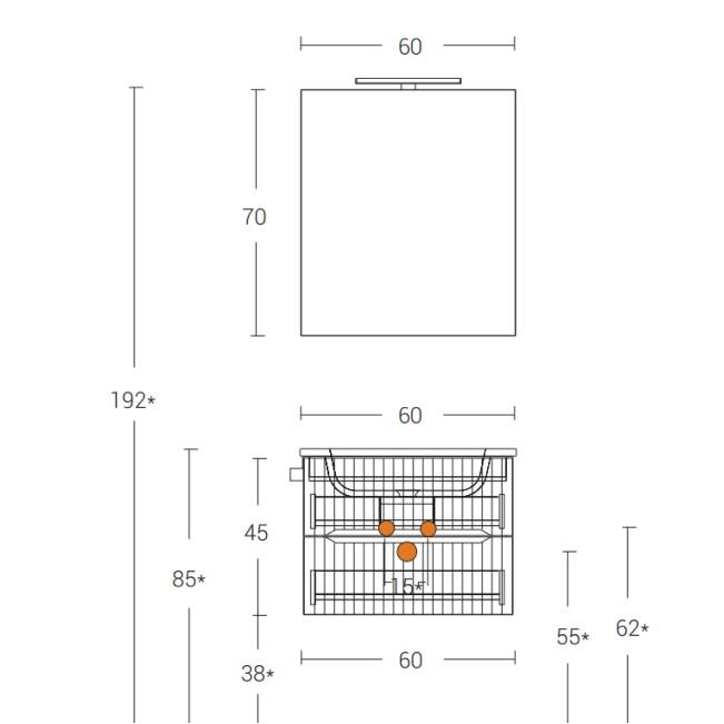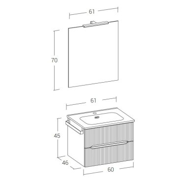 MUEBLE DE PARED 2 CAJONES DE 60CM CON LAVABO Y ESPEJO - VE09