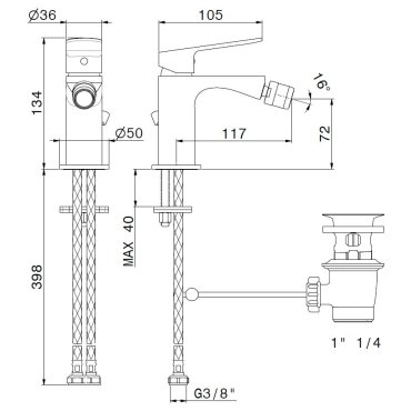 NEWFORM RISE UP MEZCLADOR DE BIDÉ CON DESAGÜE CROMADO