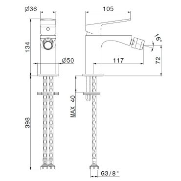 NEWFORM RISE UP MEZCLADOR DE BIDÉ SIN DESAGÜE CROMADO