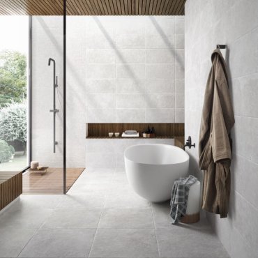 El gres porcelánico inspirado en la piedra natural de Borgoña es la propuesta de la colección Chateau.