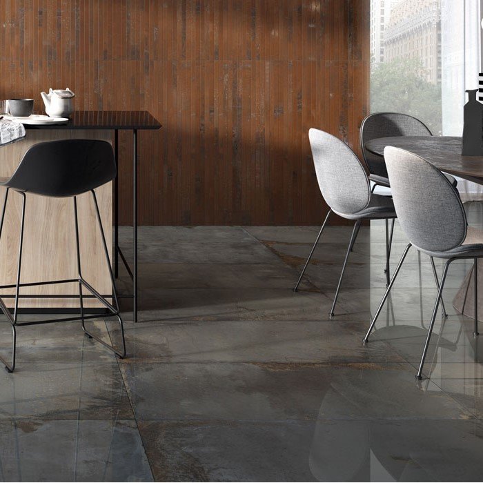 suelo gres porcelánico efecto metal interior baño cocina salón salón natural rectificado 10mm 1cm J88027 calefacción por suelo