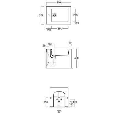Bidé empotrado en pared, de un orificio