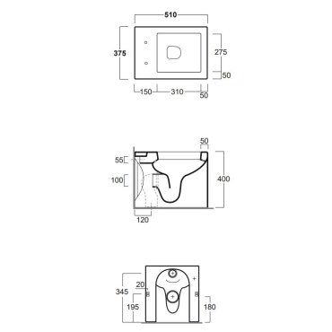 Curva técnica FZ01 - Inodoro a ras de pared con desagüe en el suelo o en la pared FZ04 - bidé empotrado en la pared con un orificio FZ003 - asiento de inodoro blanco con bisagras cromadas