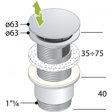 TEA BONDE CLIC CLAC UNIVERSELLE LAITON CHROMÉ POUR LAVABO ET BIDET DIAM. 63 MM