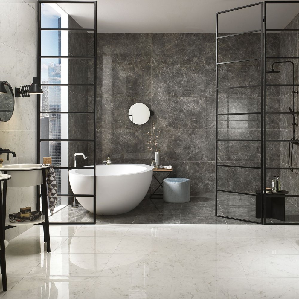 • CARRELAGE LEA CERAMICHE TIMELESS MARBLE PIETRA GRAY SATINÉ 100X100