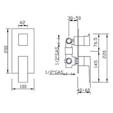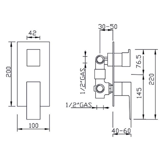 BUGNATESE TETRIS MISCELATORE DOCCIA INCASSO CON 3 RUBINETTI ARRESTO CROMATO