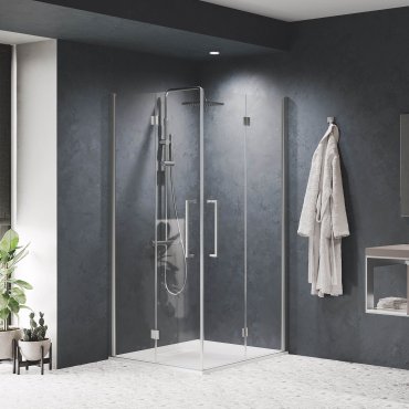 CABINE DE DOUCHE D'ANGLE AVEC OUVERTURE DE 2 PORTES PLIANTES