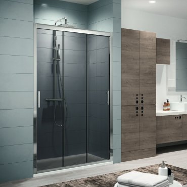 PORTE DE DOUCHE AVEC 3 PORTES COULISSANTES BILATÉRALES DE DROITE À GAUCHE