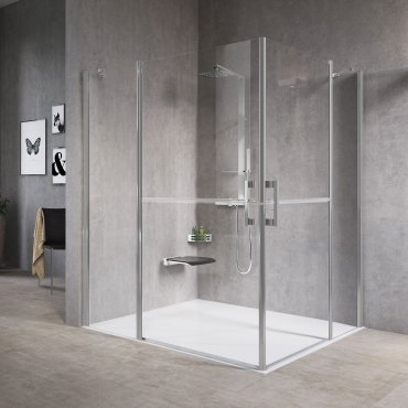 Même les profils du verre de la douche peuvent être personnalisés, par des textures et des couleurs qui caractériseront la cabine de douche elle-même.