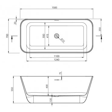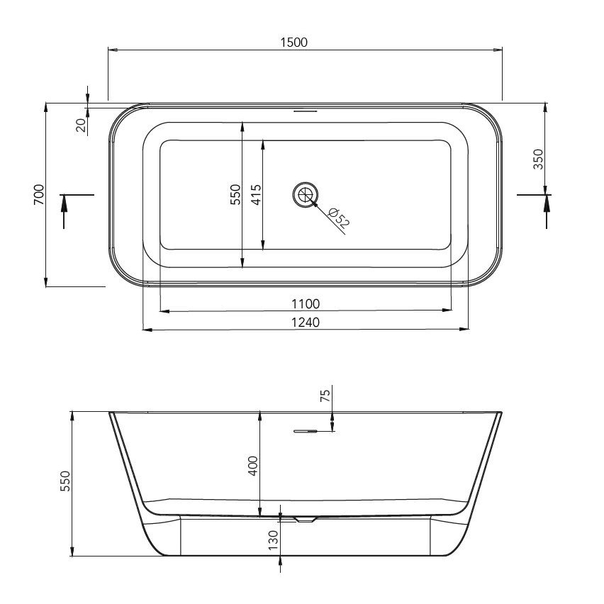FORMA AQUAE MEDA BAIGNOIRE BLANCHE BRILLANTE INSTALLATION LIBRE 150X70