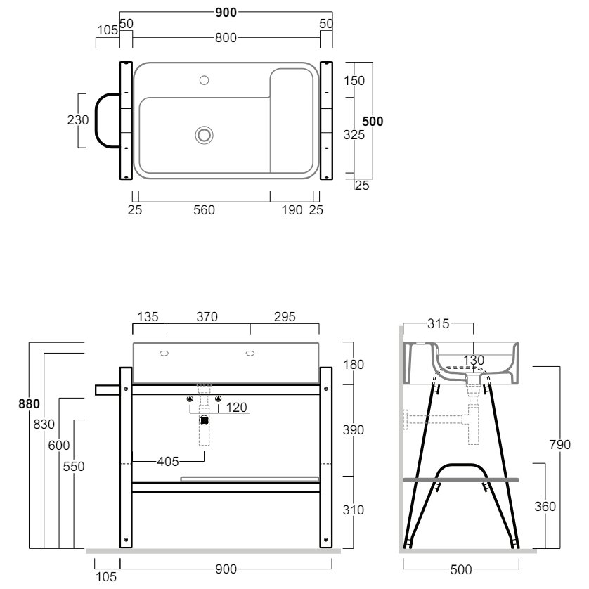 SIMAS HOP STRUCTURE AVEC LAVABO MONOTROU BLANC 100X50CM ET ÉTAGÈRE