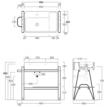 SIMAS WAVE STRUTTURA IN METALLO PER LAVABO A 2 GAMBE CON RIPIANI IN LEGNO 50X83