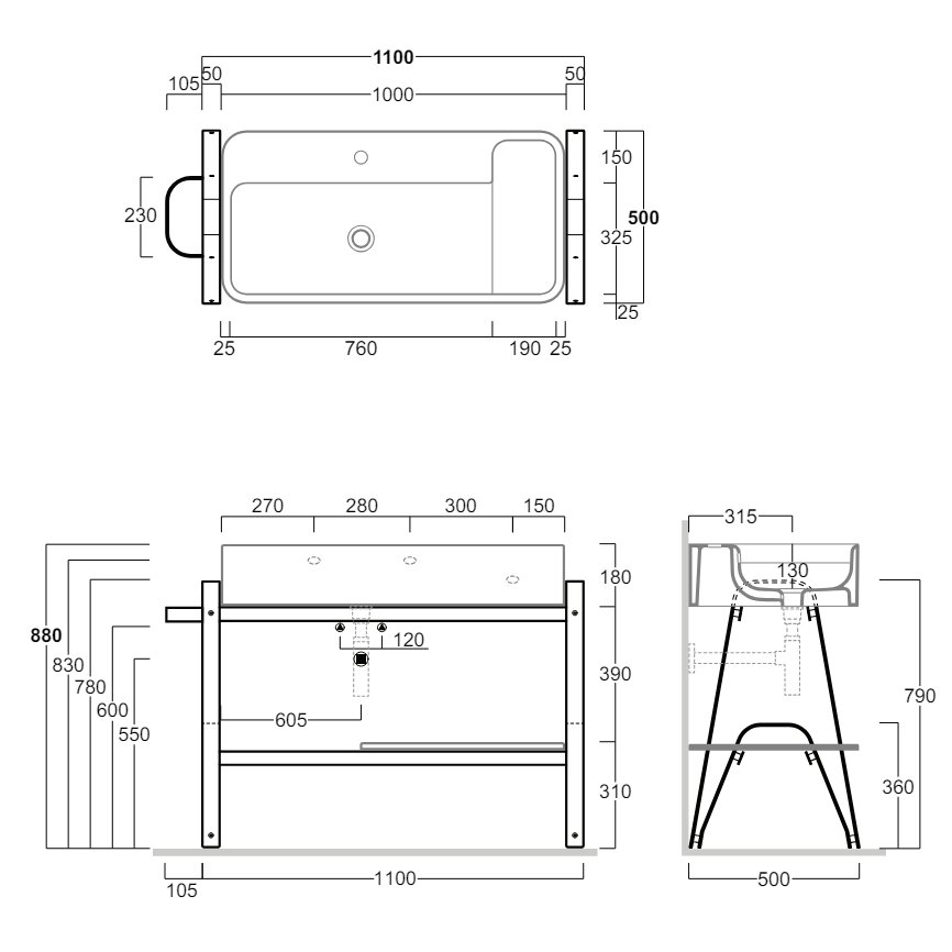 SIMAS WAVE STRUTTURA IN METALLO PER LAVABO A 4 GAMBE CON CASSETTONE 50X83