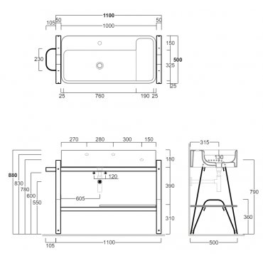 SIMAS WAVE STRUTTURA IN METALLO PER LAVABO A 2 GAMBE CON CASSETTONE 50X83