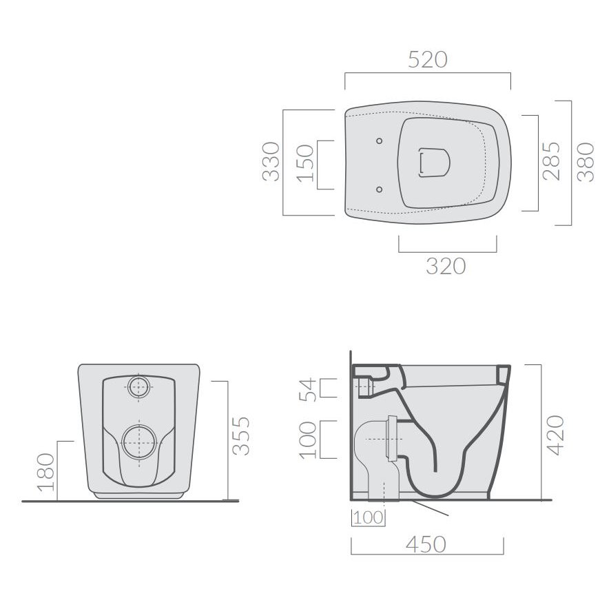 Toilette avec chasse d'eau universelle S/P 52x38xh42 cm, convertible par courbe technique. Fixation incluse.