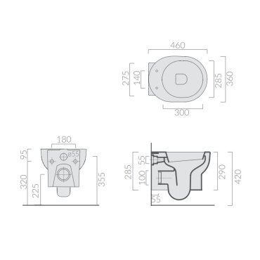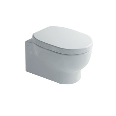 WC suspendu 46x36 cm. Abattant enveloppant en thermodurcissable, charnière avec dispositif de ralentissement.