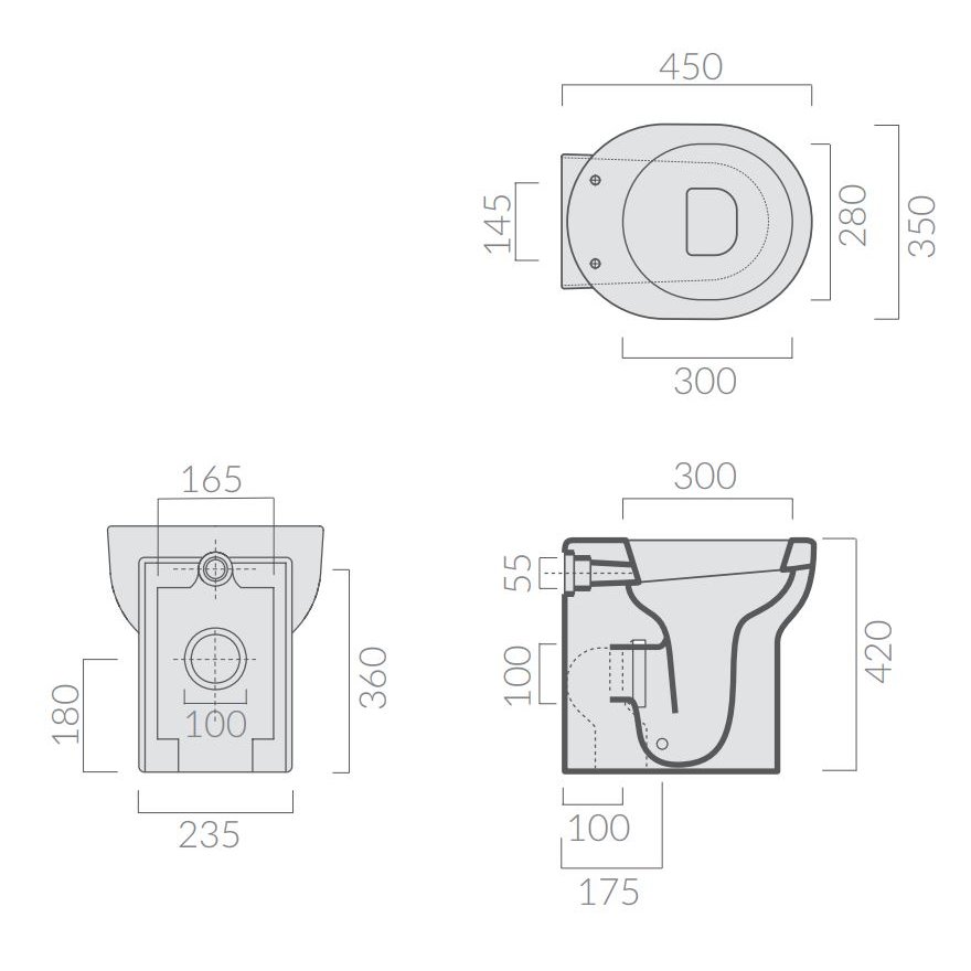 Wc avec vidange universelle S/P cm 45x35xh42, convertible par courbe technique. Fixation incluse.