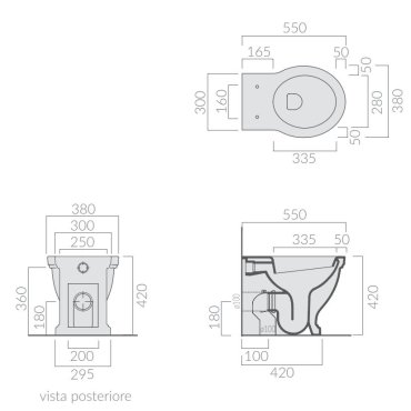 Toilette avec chasse d'eau universelle S/P 55x38 cm, convertible par courbe technique. Fixation incluse.
