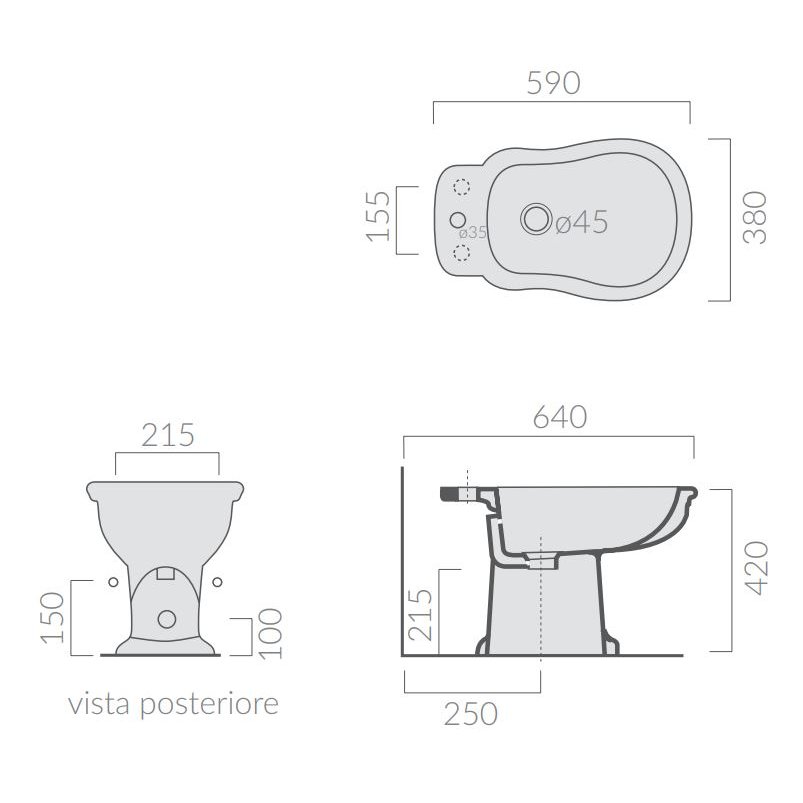 Bidet sur pied monotrou 59x38 cm. Fixation incluse.