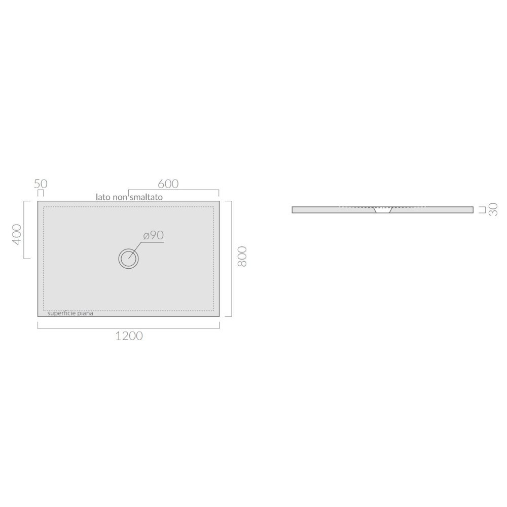 Receveur de douche en céramique avec une épaisseur réduite de seulement trois cm, disponible en neuf formats et personnalisable sur mesure.