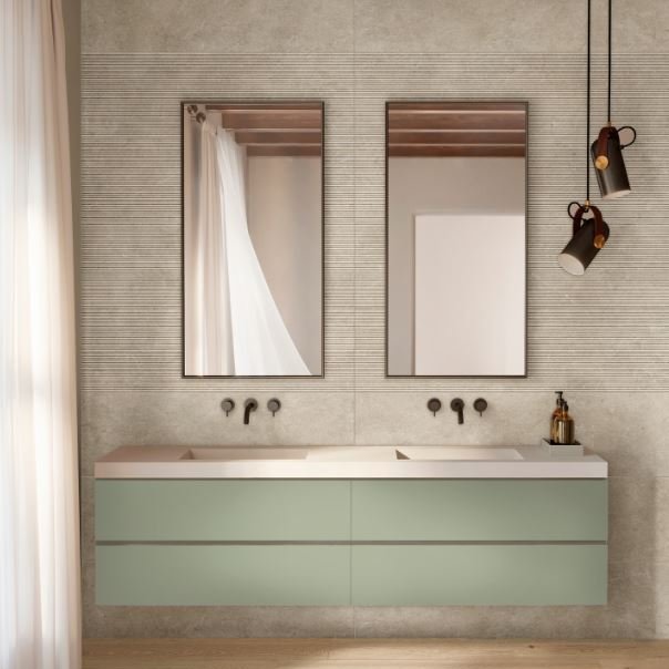 La collection LimestoneWall est complétée et enrichie par les décors naturels Agrifoglio et Losanga, géométriques, et réalisés à l'aide de la technologie tactile qui leur confère profondeur et réalisme textural.