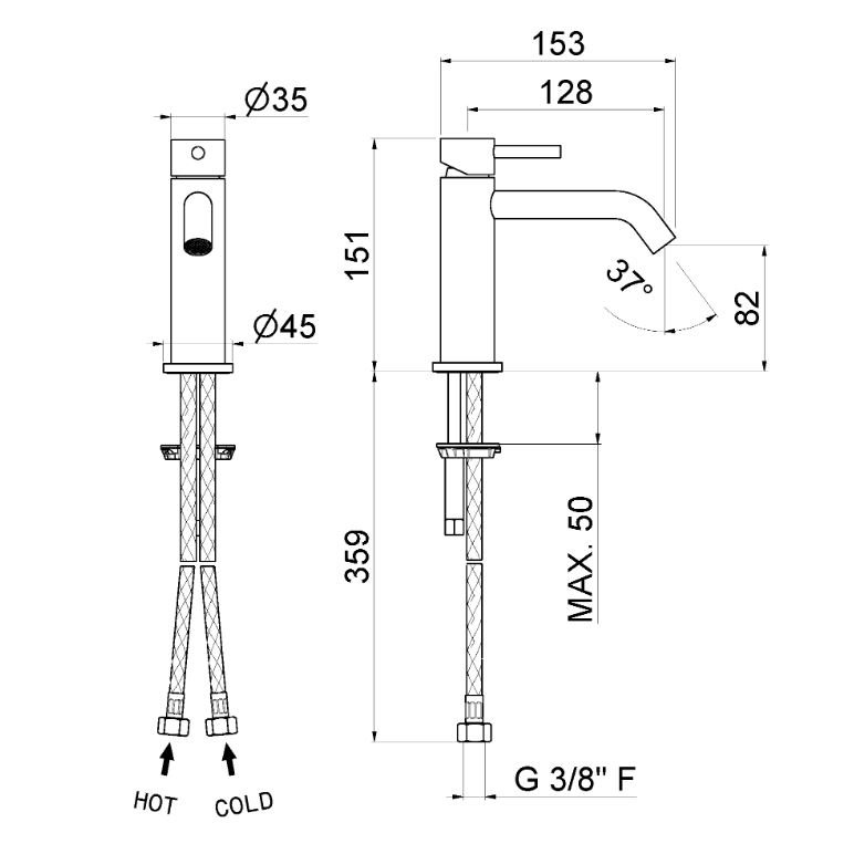 Tuyaux d'alimentation F3/8”.