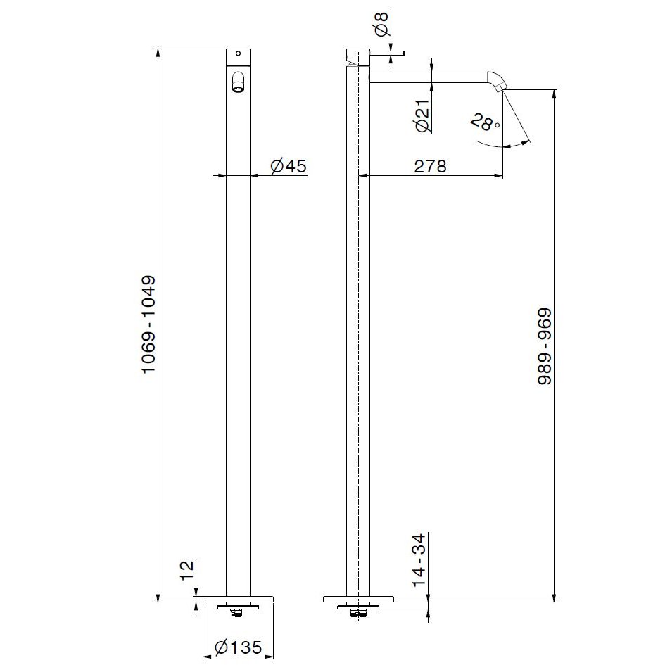 NEWFORM X-WAY MITIGEUR DE LAVABO AU SOL SANS VIDANGE CHROME
