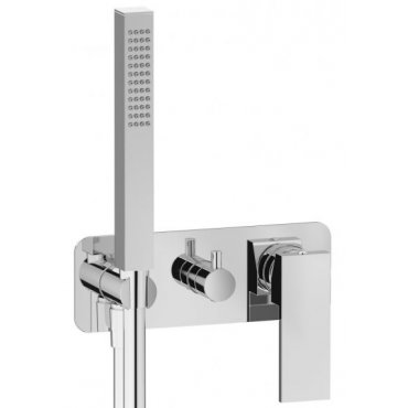 incluant une douchette chromée et un corps encastré.