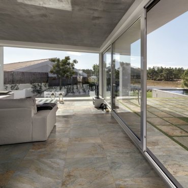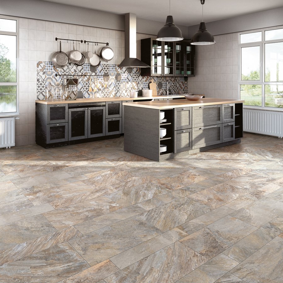 piastrella pavimento gres porcellanato effetto pietra interno bagno cucina living salotto area commerciale naturale 10mm 1cm R11 P009128 riscaldamento a pavimento