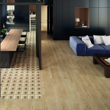 Originalità e stile nuovo contraddistinguono il gres porcellanato effetto legno della serie Dimore.