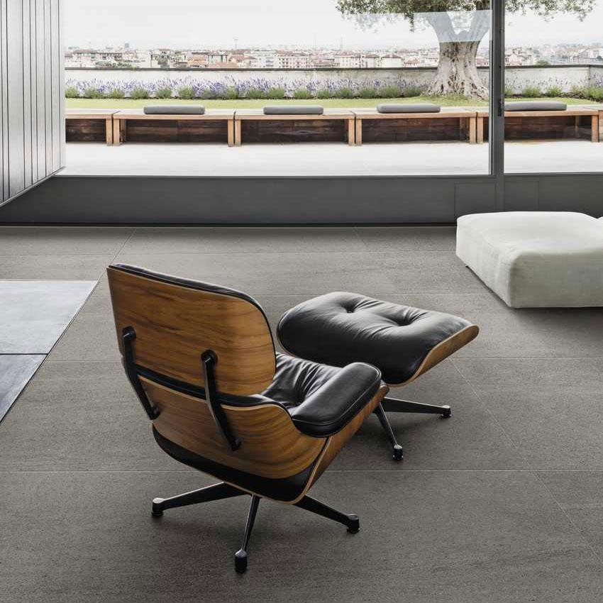 Mystone Basalto, collezione Marazzi in gres porcellanato, ispirata alla pietra di origine lavica.