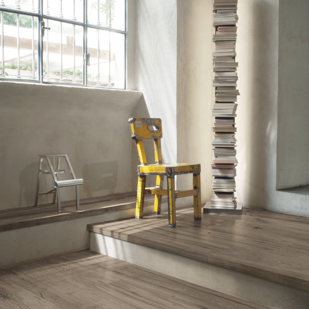 Si declina in 6 colori effetto legno e in 2 classici formati da parquet: 26,5x180 e 16x100 anche 9mm.