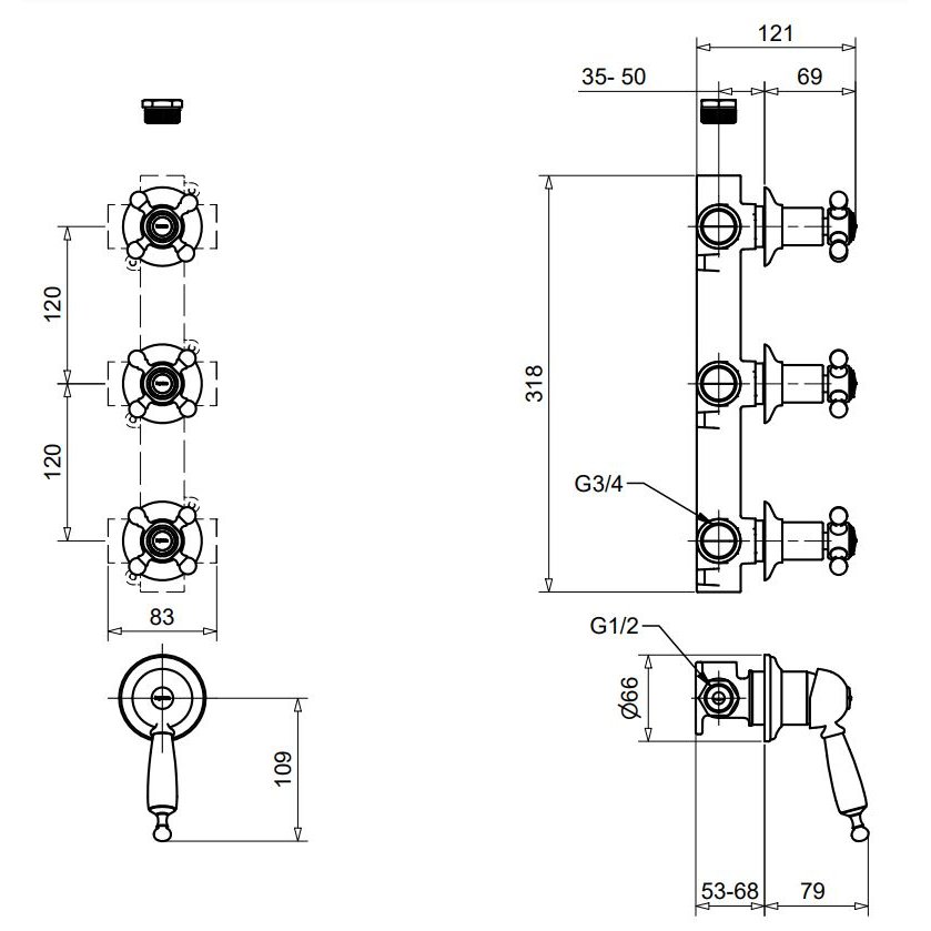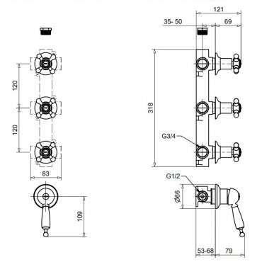 GABOLI FRATELLI SOPHIE SOLO DEVIATORE INCASSO 3 USCITE