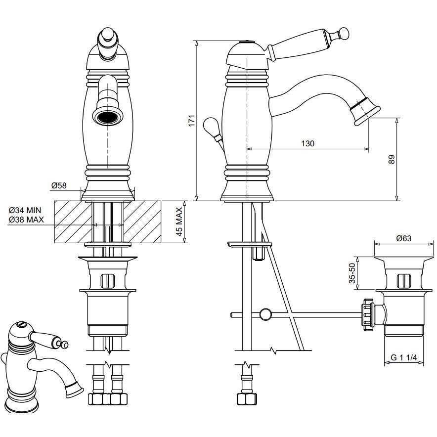 BUGNATESE OXFORD MISCELATORE LAVABO CANNA FISSA CON SCARICO CROMATO