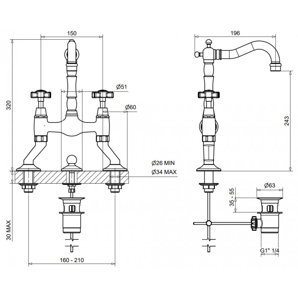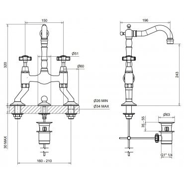 BUGNATESE PRINCETON BATTERIA LAVABO A PONTE CON SCARICO CROMATO