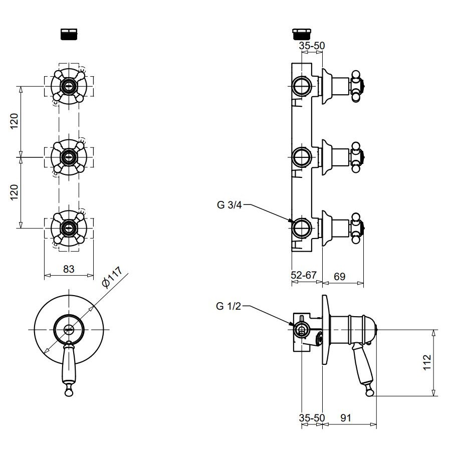 miscelatore monoleva doccia incasso termostatico deviatore corpo piastra attacchi tre uscite 3 vie rubinetto arresto 6309