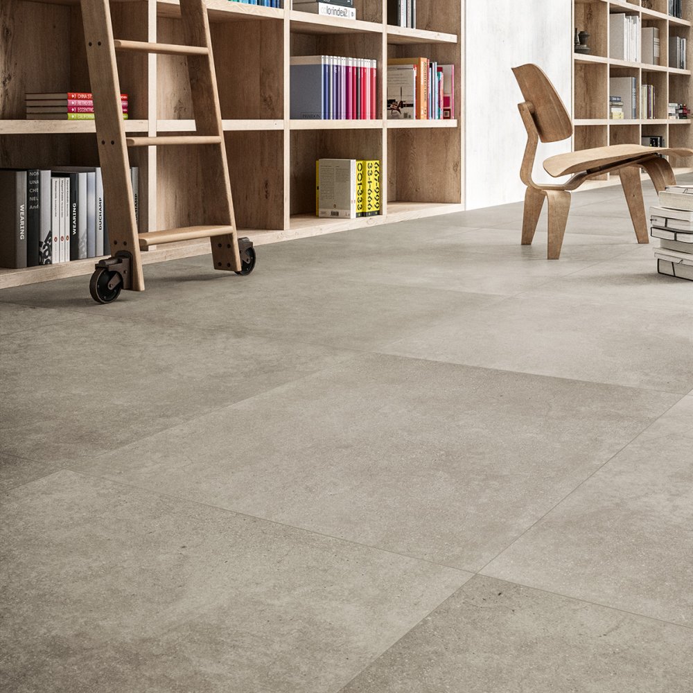 gres porcellanato pavimento rivestimento effetto cemento piastrelle casa bagno cucina living camera da letto area commerciale naturale rettificato prima scelta R10 9mm 0,90cm 7W26 riscaldamento a pavimento