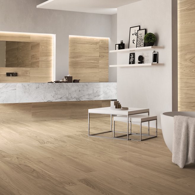 gres porcellanato pavimento rivestimento effetto legno piastrelle casa bagno cucina living camera da letto area commerciale naturale rettificato prima scelta R10 8,5mm 0,85cm 21SR01R riscaldamento a pavimento