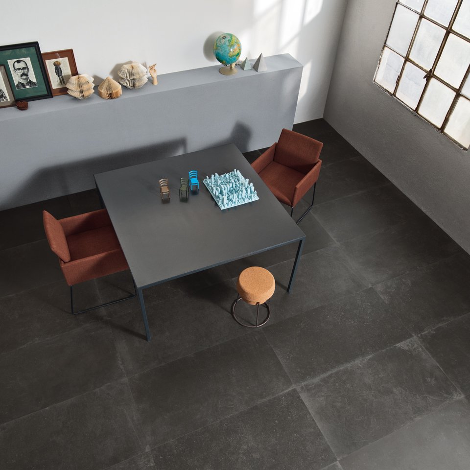 C_Mine è una collezione di Leonardo Ceramica che trae ispirazione da un sito industriale dismesso nei pressi della città belga di Genk, riconvertito da miniera di carbone in un moderno centro culturale.