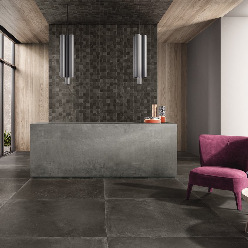 Un progetto innovativo pensato per coniugare storia e tradizione con contemporaneità e design e ricostruire la dinamicità e l’atmosfera industriale sulla superficie ceramica attraverso questo gres porcellanato estremamente versatile, color Nero, Grigio, Argento e Greige idoneo alla pavimentazione e al rivestimento di tutti gli ambienti della casa. La collezione ha una vasta disponibilità di formati 60x60, 45x90, 120x120, 30x60, 60x120, 90x90 e 30x30 nella versione mosaico.