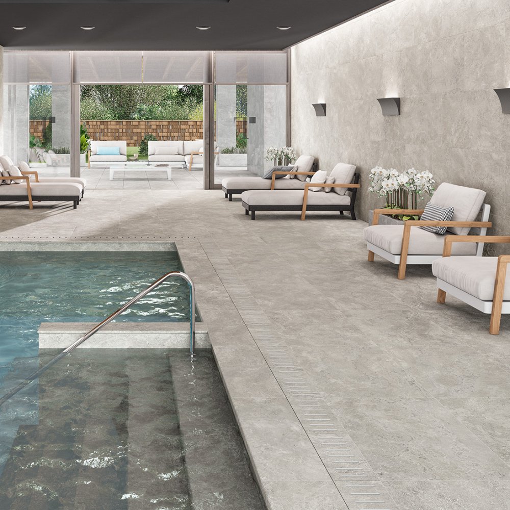 gres porcellanato pavimento rivestimento effetto pietra piastrelle casa bagno cucina living camera da letto area commerciale naturale rettificato prima scelta R10 9,5mm 0,95cm TRM 26RT riscaldamento a pavimento