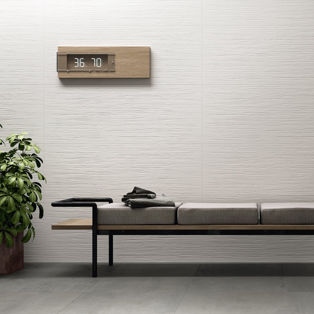 La nuova proposta di rivestimentiinpastabianca “Global” di NovaBell esprime il concetto di semplicità sviluppando il colorebianco in tre diverse superfici: lucida, matt e strutturata. Il maestoso formato 45x120 permette la realizzazione di ampie pareti con minime interruzioni per ampliare l’effetto di continuità. La luce fa emergere le morbide tridimensionalità dei differenti decori Stripes, Wave e Struttura che evidenziano la superficie ceramica rendendo la stanza da bagno unica nel suo genere.