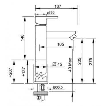 GABOLI FRATELLI VICKY MISCELATORE MONOCOMANDO PER LAVABO CON PROLUNGA 200MM