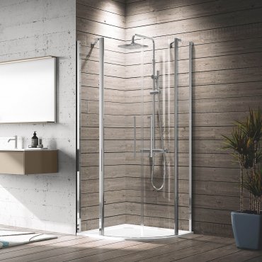 BOX DOCCIA AD ANGOLO SEMICIRCOLARE, APERTURA 2 ANTE BATTENTI E 2 FISSE