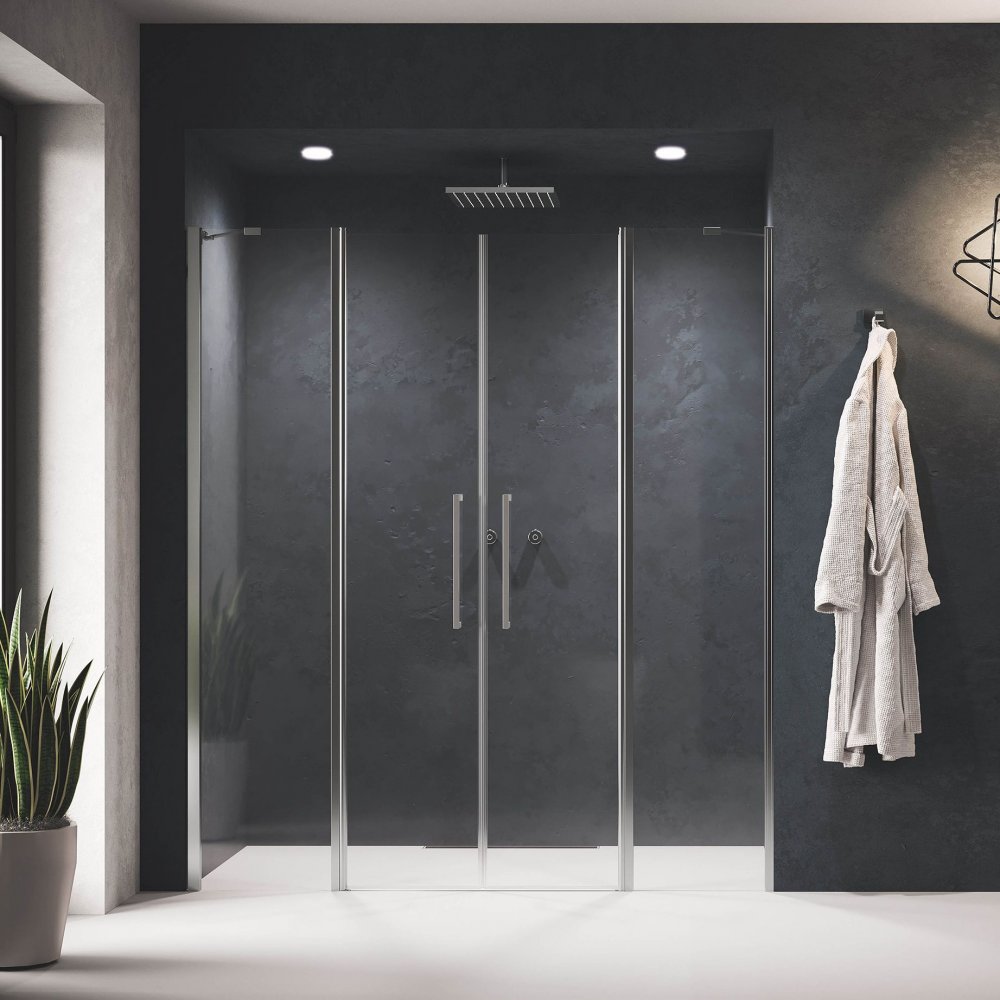 PORTA DOCCIA APERTURA 2 ANTE BATTENTI E 2 FISSE IN LINEA, IN NICCHIA